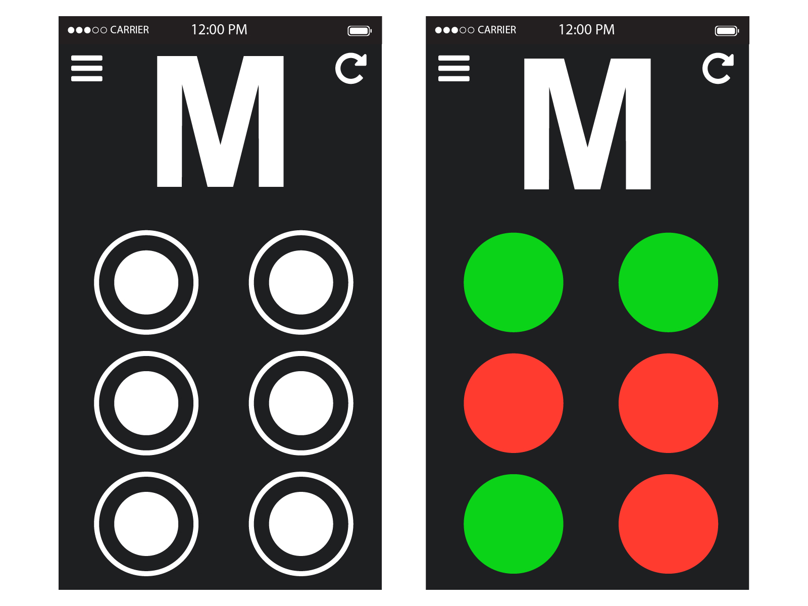 The app is created for people that have poor or no vision, utilizing large fonts and contrasting colors. Creating a high contrast and highly visible interface with large touch surfaces was important in providing a tool useful to anyone having the slightest trouble viewing the screen.